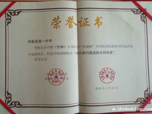 此次获奖,是竞技宝电竞首页 “质量立校、依法治校、改革兴校、文化强校”的治校方略的重要体现,是“文化一中、科技一中、幸福一中、和谐一中”的办学愿景的重要展示,是对付出辛勤工作的所有编辑老师的鞭策,也是对竹林文学社全体社员的鼓励,更是shoboblog积极追求高品质校园文化建设的又一硕果展示。(洪汉友供稿)