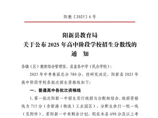 阳新县教育局关于公布2025年高中阶段学校招生分数…