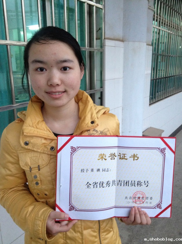 董碘同学被评为“省优秀共青团员”