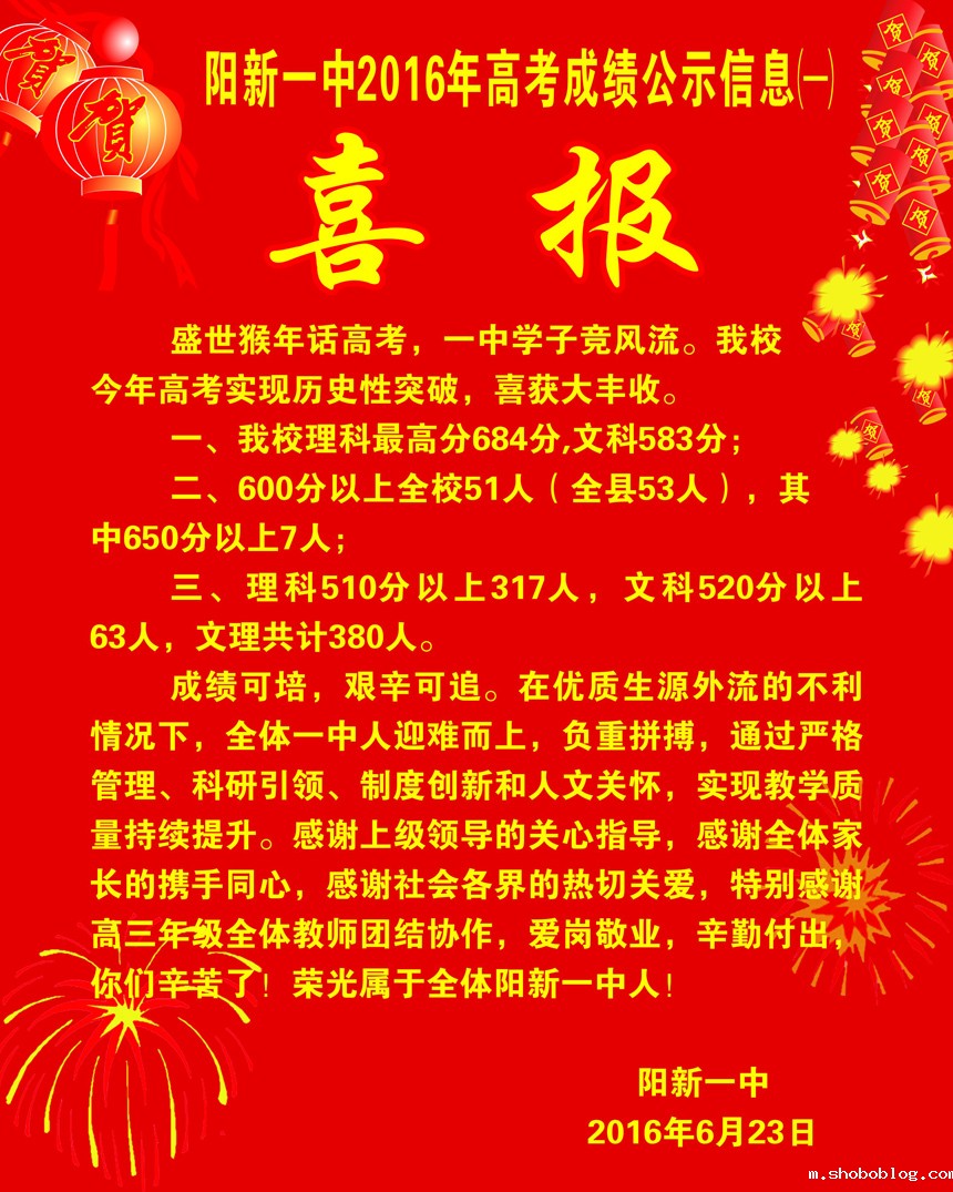 shoboblog2016届高考成绩通报(第1号)