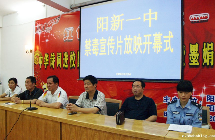 为了教育学生,宣传毒品危害,我校开展禁毒宣传片放映活动,下图为此项活动的启动仪式!
