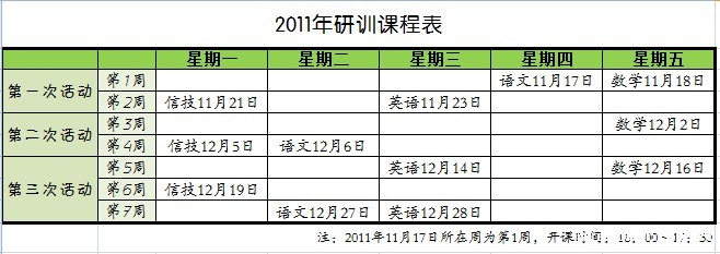 2011高中研训课程安排表